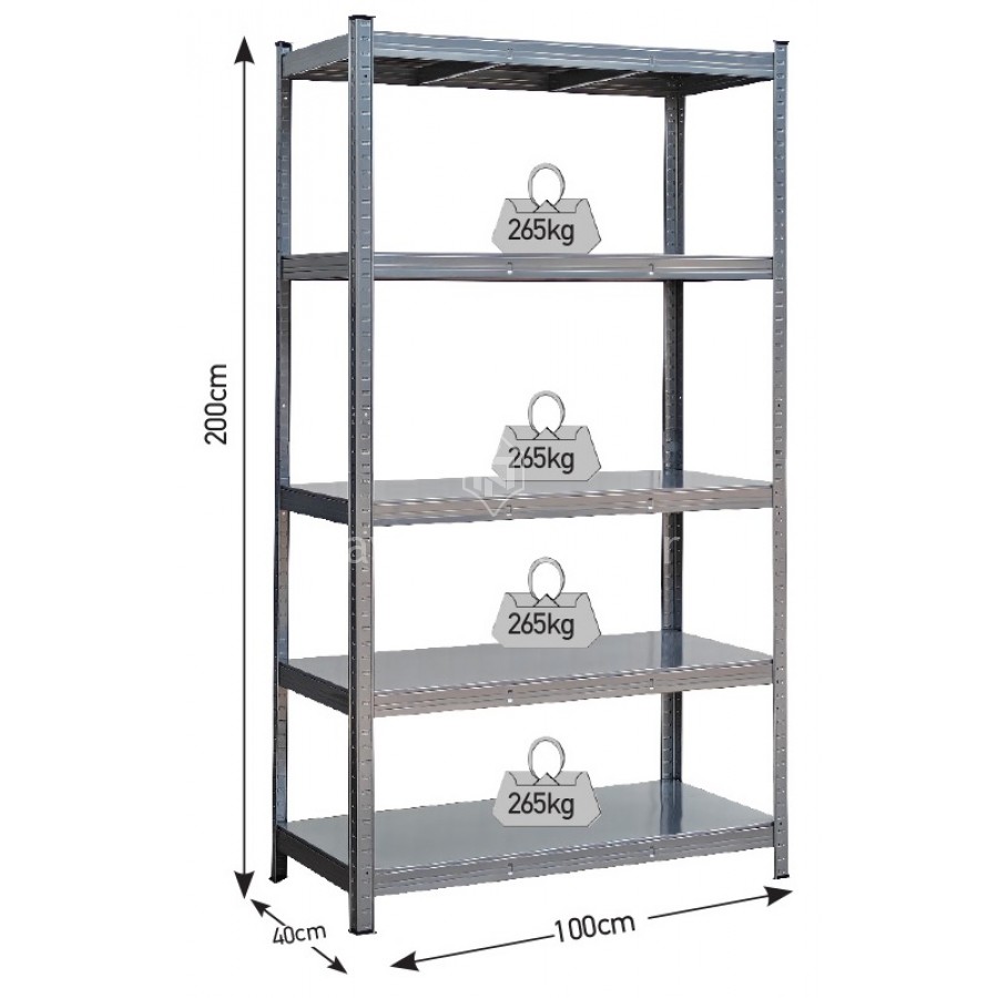 Ραφιέρα Μεταλλική Ηλεκτροστατικής Βαφής 100x40x200, με 5 Ράφια Max. Φορτίο 265kg ανά Ράφι,
