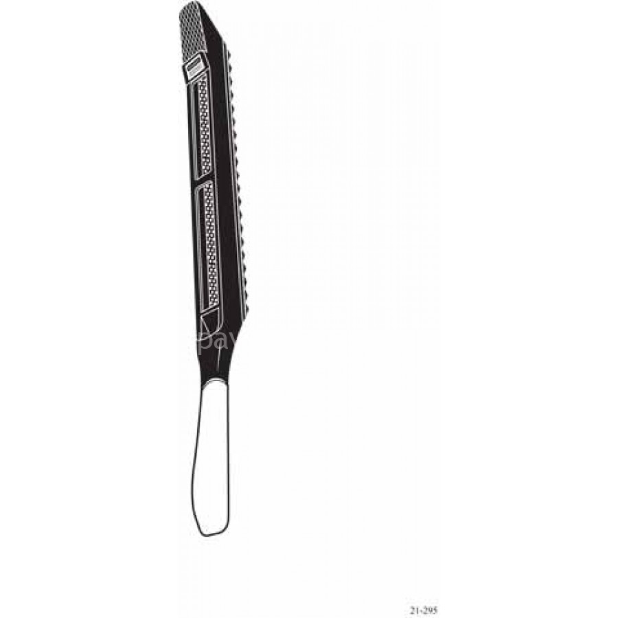 Μεταλλικός σκελετός με αφαιρούμενη πίσω λαβή από κίτρινο πολυπροπυλένιο. Μπροστινή λαβή με αυλακώσεις για εργασία με μεγαλύτερη ακρίβεια. Πλεονεκτεί απέναντι στις παραδοσιακές λίμες για πολλές εργασίες μηχανικής κατεργασίας και φινιρίσματος. Δέχεται όλες τις λάμες μήκους 250mm.