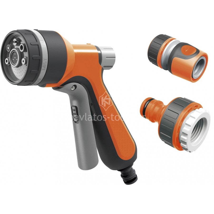 Σετ Ποτίσματος 4τεμαχίων με Πιστόλι Νερού Ρυθμιζόμενο ταχυσύνδεσμο με Στοπ+Ρακόρ GH9214 062691