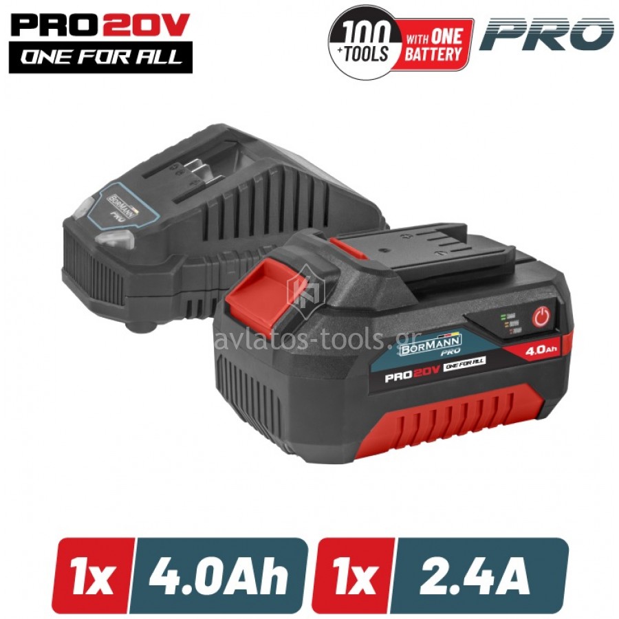 Σετ μπαταρία & φορτιστής κατάλληλο για τα όλα τα εργαλεία μπαταρίας της Πλατφόρμας BORMANN PRO 20V.