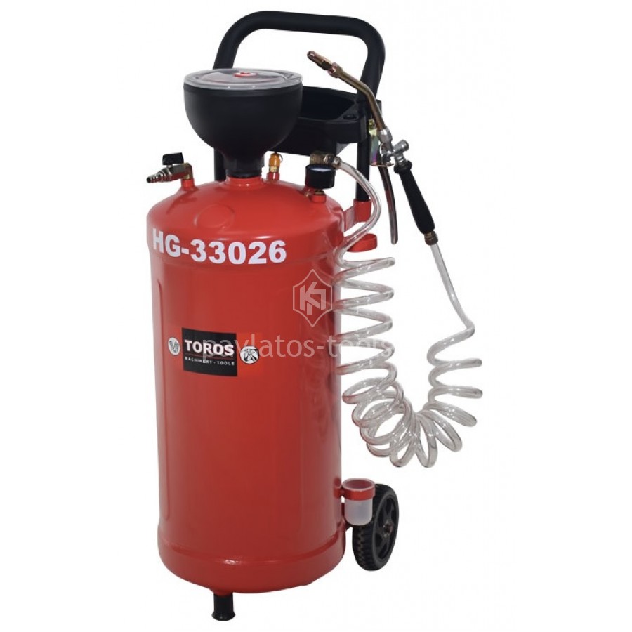 Τροχήλατη λαδιέρα βαλβολινιερά TOROS που λειτουργεί με πεπιεσμένο αέρα , κατάλληλη για λάδια μηχανών και βαλβολίνες .