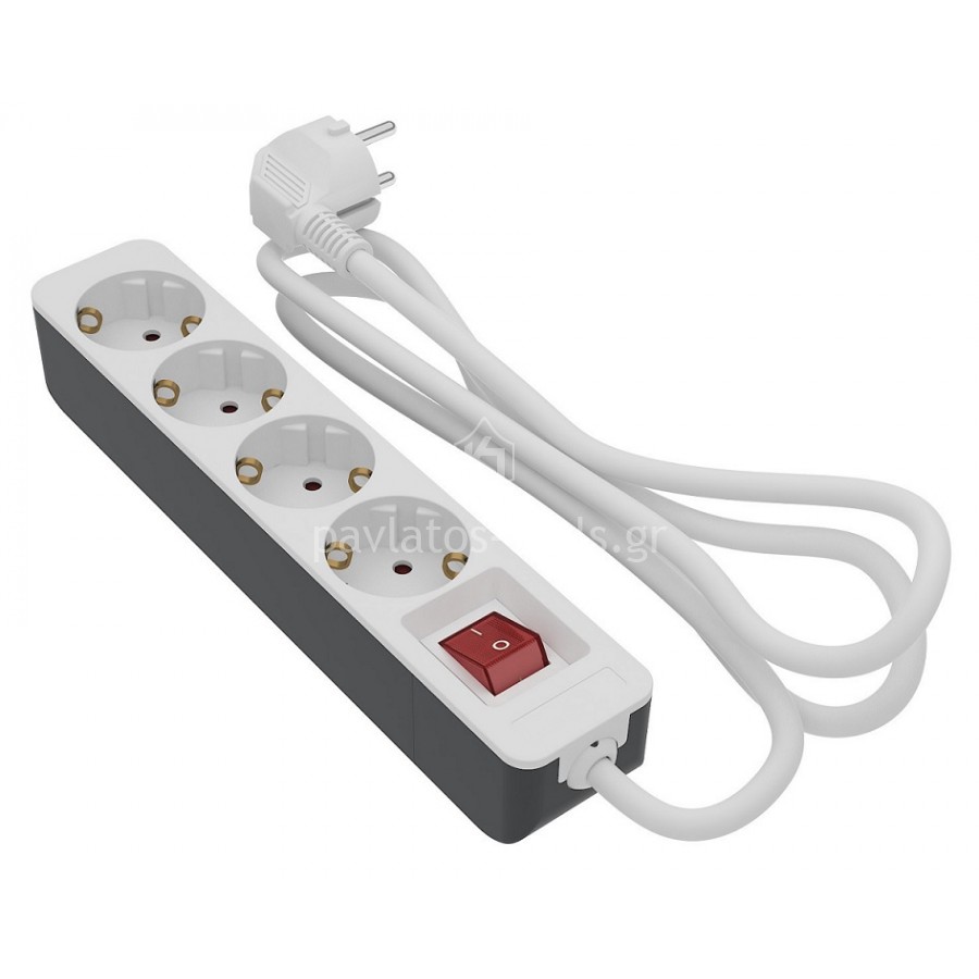 Πολύμπριζο Bulle λευκό με διακόπτη 4 θέσεων και καλώδιο 3m 607041